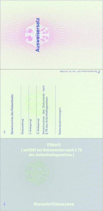 Auf Seite 5 ist eines der in den Anlagen D2a, D13b und D14 wiedergegebenen Klebeetiketten aufzukleben (entfällt bei Dokumenten nach § 78 des Aufenthaltsgesetzes). Es dürfen bis zu zwei Verlängerungen mit demselben Trägervordruck vorgenommen werden. Jeweils ist die Seriennummer des Klebeetiketts oder die Seriennummer des Dokuments nach § 78 des Aufenthaltsgesetzes auf Seite 6 einzutragen. Jede dieser Eintragungen ist mit einem Dienstsiegel zu bestätigen.