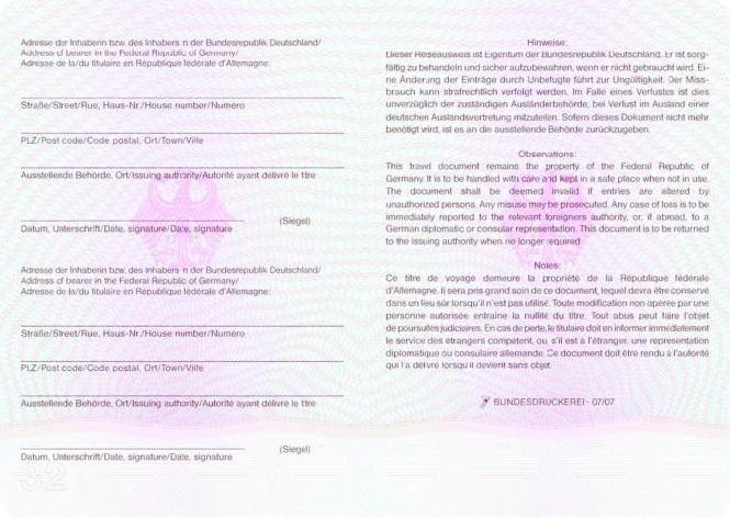 der auf den Seiten 2 und 3 des vorläufigen Reiseausweises aufgeklebt wird –