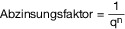 Berechnungsvorschrift für die Abzinsungsfaktoren (Barwertfaktoren für die Abzinsung):