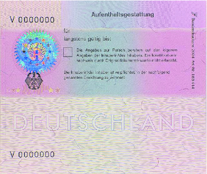 Auf Seite 5 ist stets das in dieser Anlage wiedergegebene Klebeetikett aufzukleben, das nicht ohne diesen Trägervordruck verwendet werden darf. Bei Verlängerungen ist ein neues Klebeetikett zu verwenden. Es dürfen bis zu zwei Verlängerungen mit demselben Trägervordruck vorgenommen werden. Jeweils ist die Seriennummer des Klebeetiketts auf Seite 6 einzutragen. Jede dieser Eintragungen ist mit einem Dienstsiegel zu bestätigen.